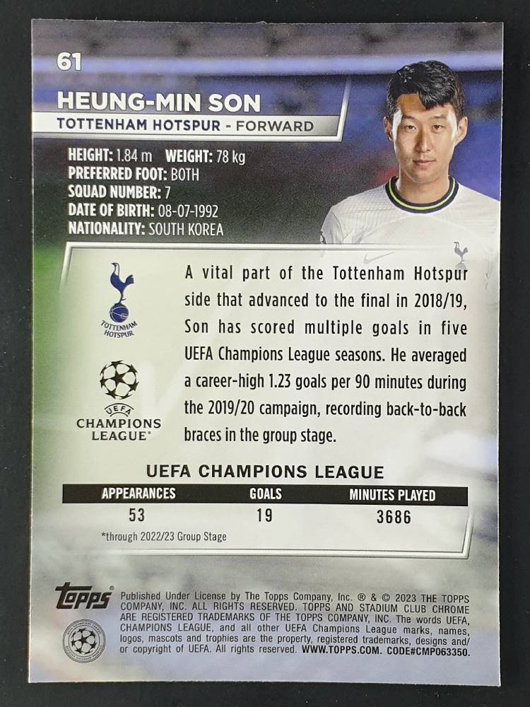 2022-23 Topps Chrome UEFA Club Competitions 5 Heung-Min Son Gold Refractor [CCG10]